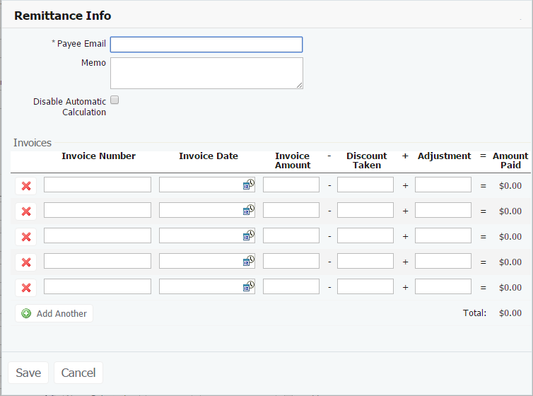 6. Click "Add Remittance" to preview where you can enter information to notify the payee about the payment
