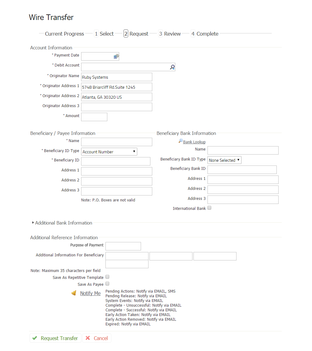 (Remember you'll need to go to Payment Activity later to approve and release the wire)