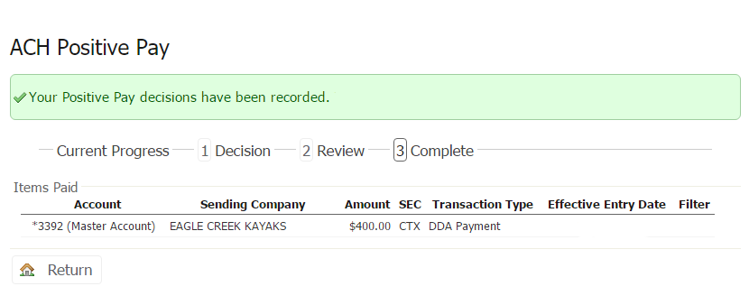 4. Click "Enter Decisions" to preview the confirmation page