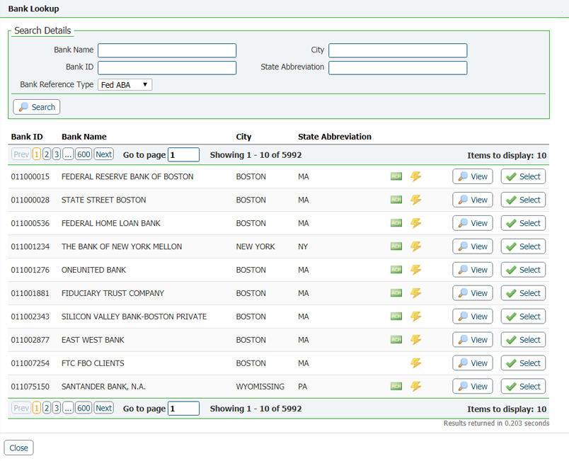 6. Click Bank Lookup to preview how easy it is to find bank information