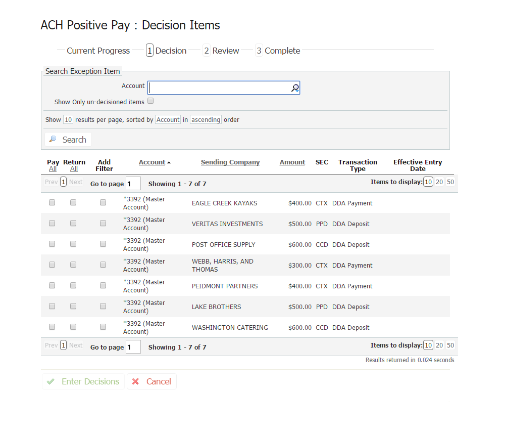 4. Click "Enter Decisions" to preview the confirmation page