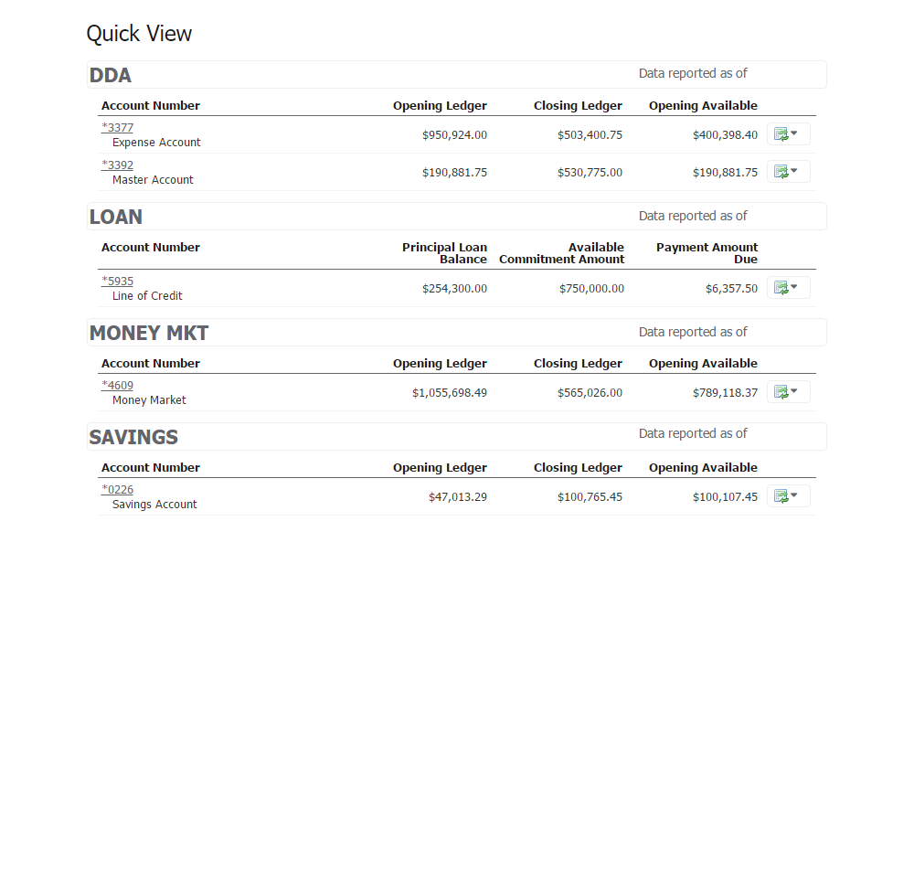 You can use the links to view the most recent 75 transactions for that account.
